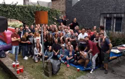 After a hearty lunch and a few rough fights on the inflatable games, it was time for beer pong, whose intense competition quickly roused the troops. Beer pong is very popular in the US: two teams take turns throwing a ping‑pong ball across a table, aiming to land it in one of ten beer glasses at the other end. What happens when you “score”? You make your opponents drink, of course! (We’re from Liège or we’re not…)