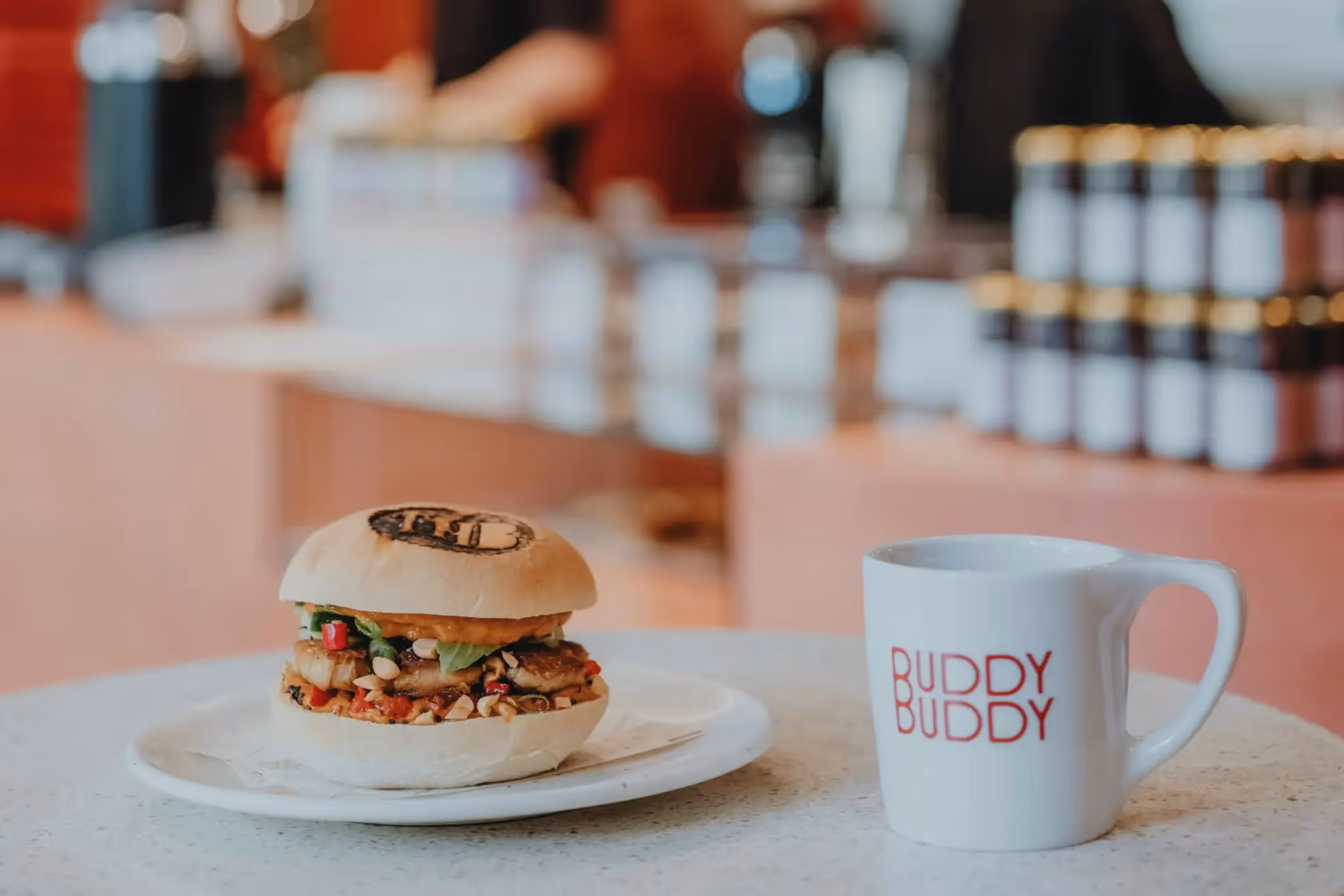 On Sunday 1 May we finally had the chance to present our gem, which we had been working on for some time, to the general public in an ultra‑Instagrammable setting. 😎 For months we developed a truly tasty burger inspired by Thailand with BUDDY BUDDY peanut butter. With its lightly spiced sauce made from peanut butter and red curry, this burger – available vegan or classic in our restaurants – will make you want to take the next flight to Thailand. ✈